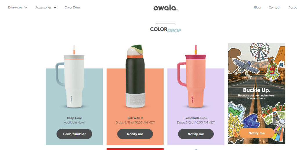 Limited-edition releases, waitlists, and scarcity tactics create a sense of exclusivity around certain water bottles. As associated with many “hype culture” products, consumers may value goods perceived as rare or hard to obtain, raising demand and social media engagement. “Hype culture” illustrates the theory of the scarcity principle, where a product or service is limited in availability (or perceived as being limited) and increases the value and attractiveness of an offering. This theory is an integral part of the Owala business model. For example, the brand created a color drop calendar, so customers know about special-edition models in advance. The limited supply of certain designs creates a sense of urgency and desire in consumers.