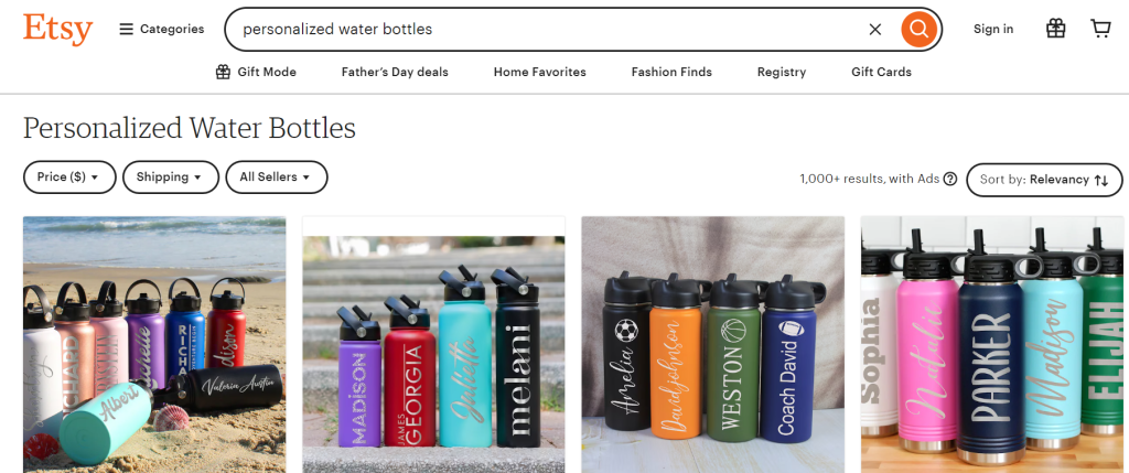 Etsy underscores the desire for customization by allowing buyers to customize anything from water bottles to posters to jewelry. According to Statista, the Etsy marketplace has over 7.5 million sellers and more than 96 million active buyers in 2024.