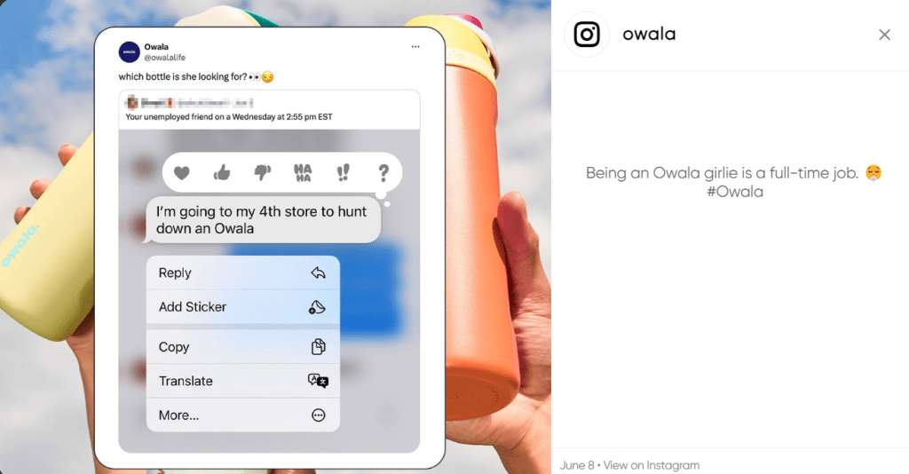 Brands that collaborate with popular influencers, celebrities, or events can leverage their existing fan bases and tap into new audiences, amplifying the viral potential of their water bottles. On May 7, 2024, Owala partnered with Clove and created the 24oz. Clove x Owala FreeSip Water Bottle, in celebration of National Nurses Week. Clove is an award-winning sneaker brand built for people on the front lines of healthcare. This partnership with a hospital brand highlights how Owala markets itself as healthy and fitness-related. Collaborations with brands lend credibility and value to the products, encouraging consumers to emulate the influencers they admire.